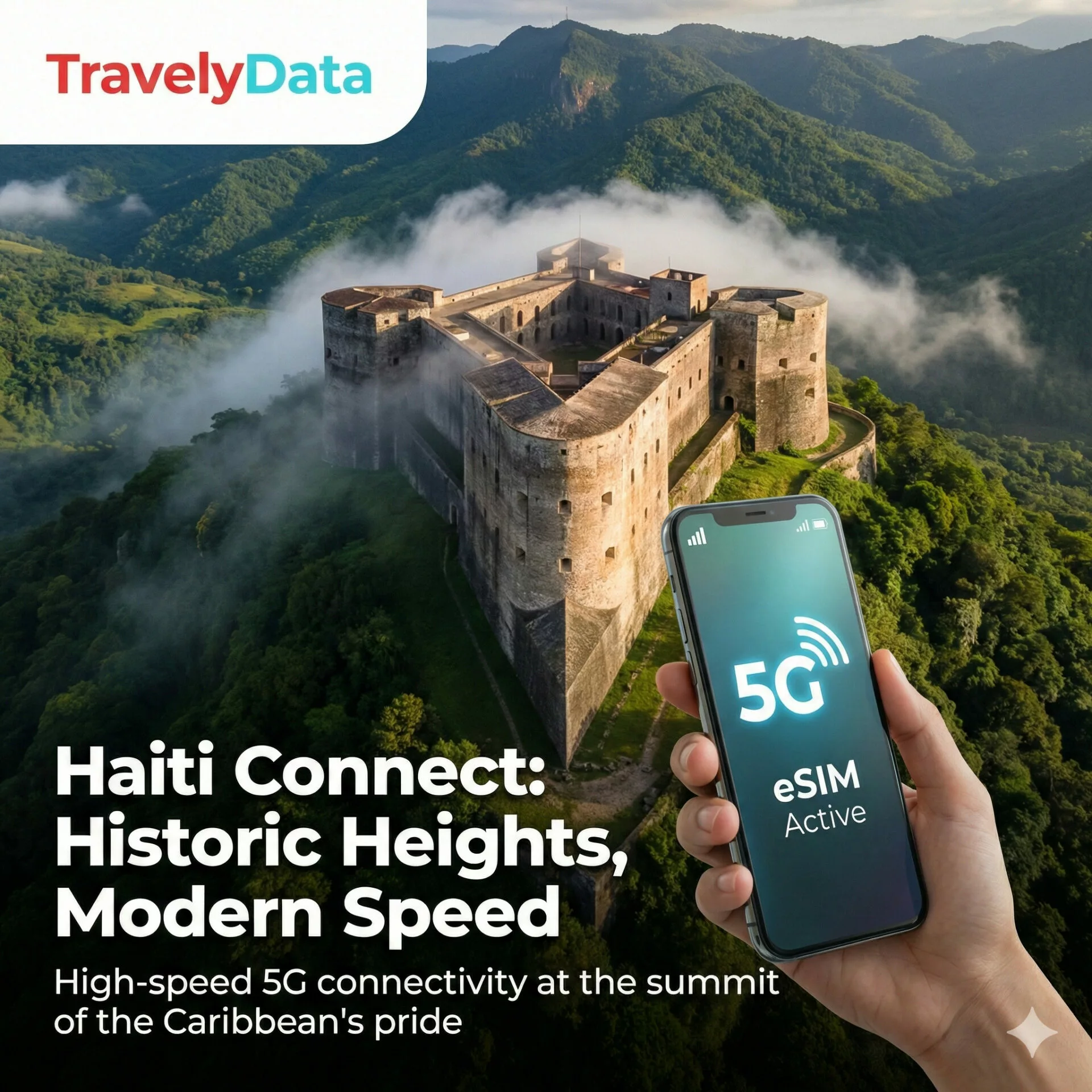 You can share photos of the Citadelle Laferrière fast. Our network works in all spots. So, you stay safe on your trip. The fast setup makes your trip easy. Fact, using a Haiti eSIM travel data card means no shop visit is needed for your phone.